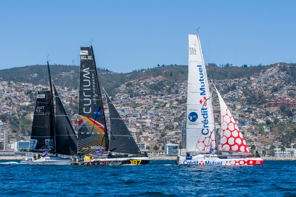 “What a long road it is,” Antoine Carpentier told us in his late-night comments. Apparently, it will remain so, with undoubtedly very different options depending on the routing: one offshore, the other closer to the South American continent, and an even closer race between the two contenders is predicted in the forecasts. What a long road it is, and what a cruel offshore race it is! Words fail to describe the fierce competition in this round-the-world race: the top three boats arrived in Reunion Island within 9 minutes after 8,500 miles, they were tied in Valparaiso after a transpacific crossing, and four of the fastest boats crossed the finish line within four hours after 7,000 miles. Now, they have a 600-mile lead that could shrink on the fifth leg, and a predicted “touch and touch” finish, according to Antoine Carpentier himself today.