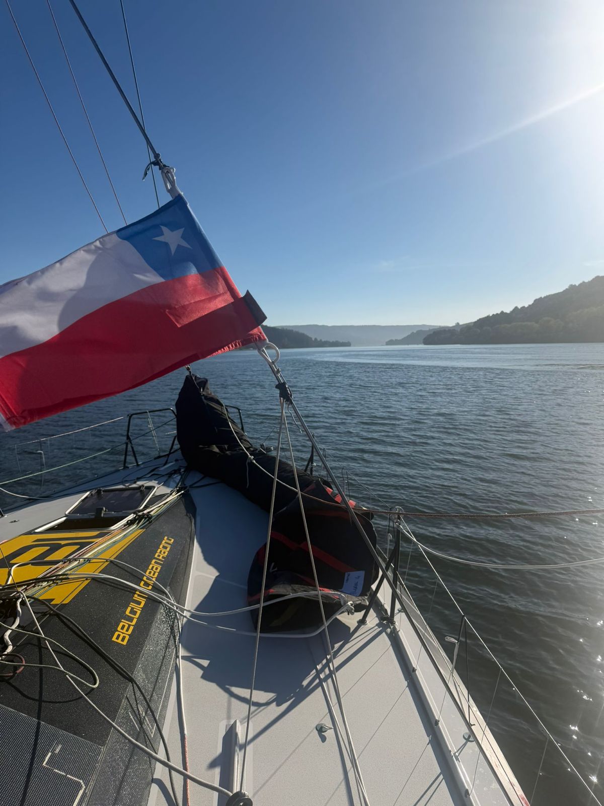 BELGIUM OCEAN RACE – CURIUM vient de quitter la ville de Vilvadia et rejoint un point à l’embouchure de la rivière ou il reprendra officiellement la course après validation par la direction de course – un grand remerciement aux autorités chiliennes, à la marine chilienne, l’Armada de Chile, et aux équipes du YC Club de Yates Higuerillas – un nouvel épisode de la belle histoire de la GLOBE40 avec le Chili.